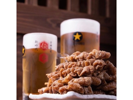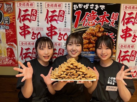 「見て楽しく、食べて美味しく、そして、誰もがもう一度食べに行きたくなる」“伝串”は、鶏皮を独自の波型串打ちにしたことで独特のパリモチ食感を実現。見た目にもインパクトがあって、つい手を伸ばしたくなる、”伝串”を山型に積み上げた“ピラミッド盛り”は店の看板メニューです。